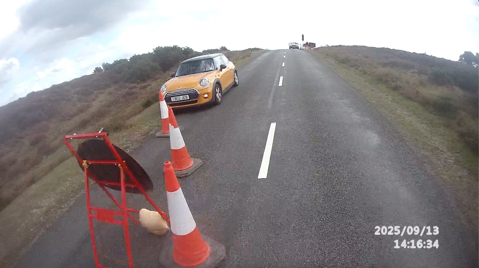What a stupid place to stop in between the traffic lights for road works.