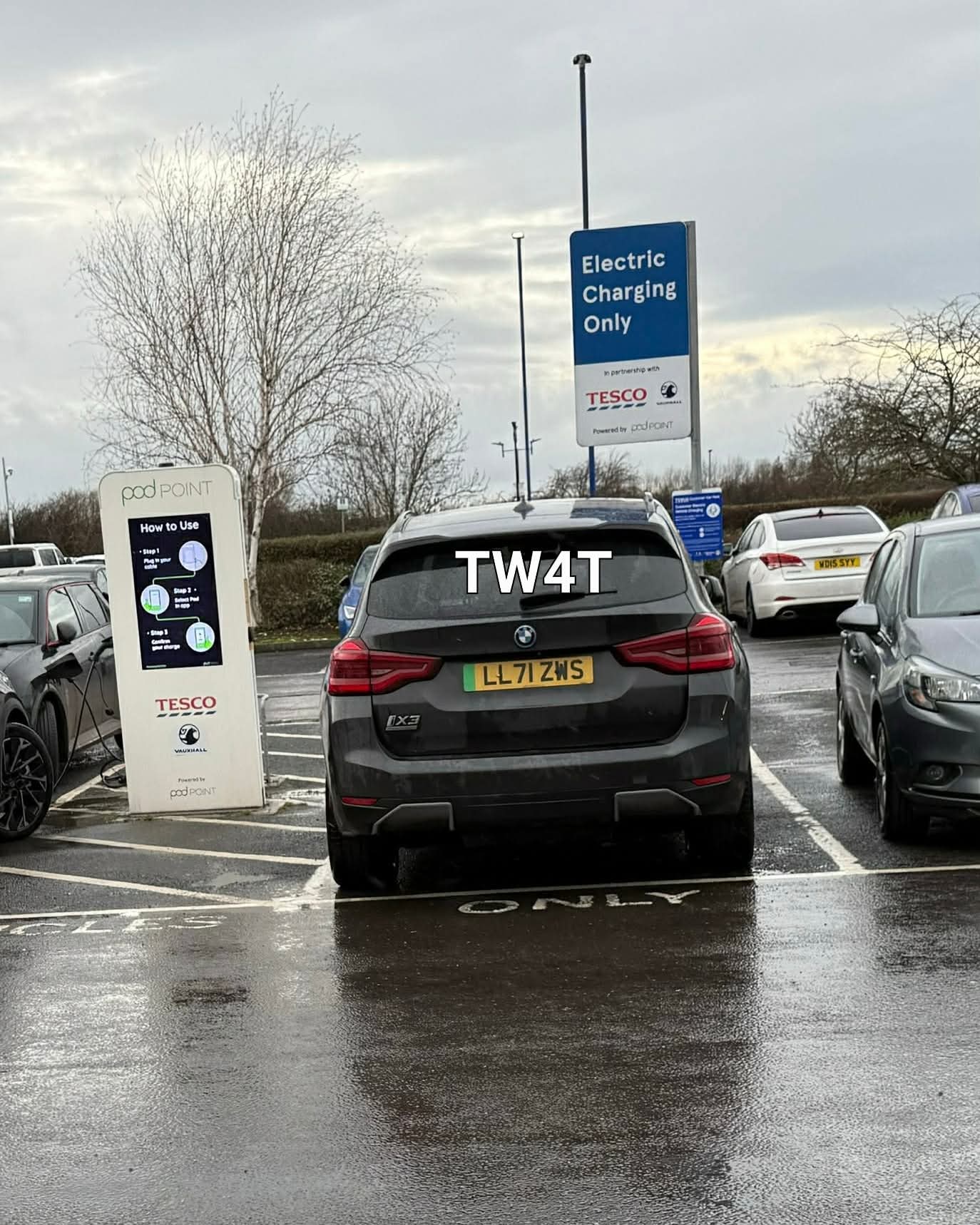 Parked in a charging space, but not charging. cars waiting to charge. KNOBBER