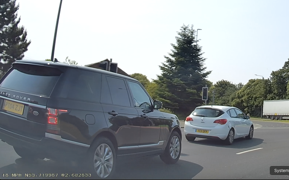 Traffic was building up in front of me, the kno8head comes racing up behind me, slams on inches from my rear bumper, tailgates me until he can undertake (I am turning right) then he tailgates the Astra, this moron is an accident waiting to happen.