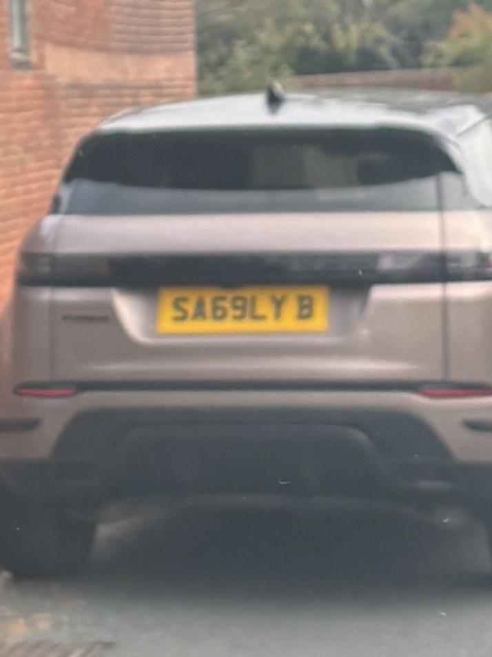 Woman in a BMW Z4 with illegally spaced chav plate.