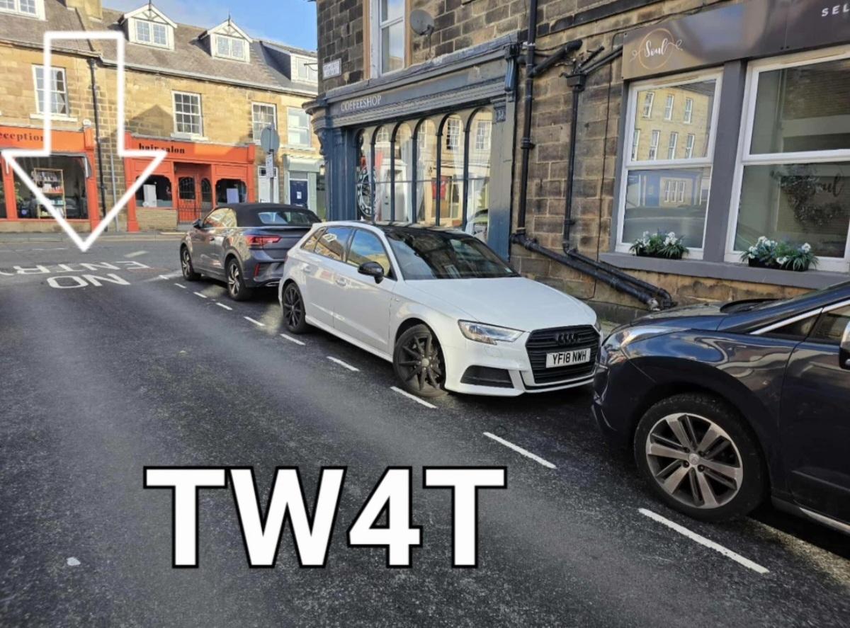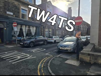 A car at a junction in Lancs is about to pull out in to the flow of traffic & this impatient wally forces his way down the side & cuts in front of the car as the car pulls out.