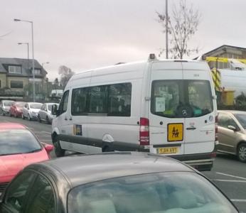 Bradford Council minibus no. 3814 from Shearbridge Depot with the PTS (Shearbridge Depot) minibus driver at normal speed.