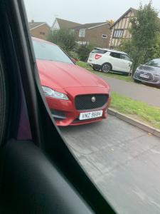 Parked with nobody inside on the side of a main road next to traffic lights. Causing drivers to drive around