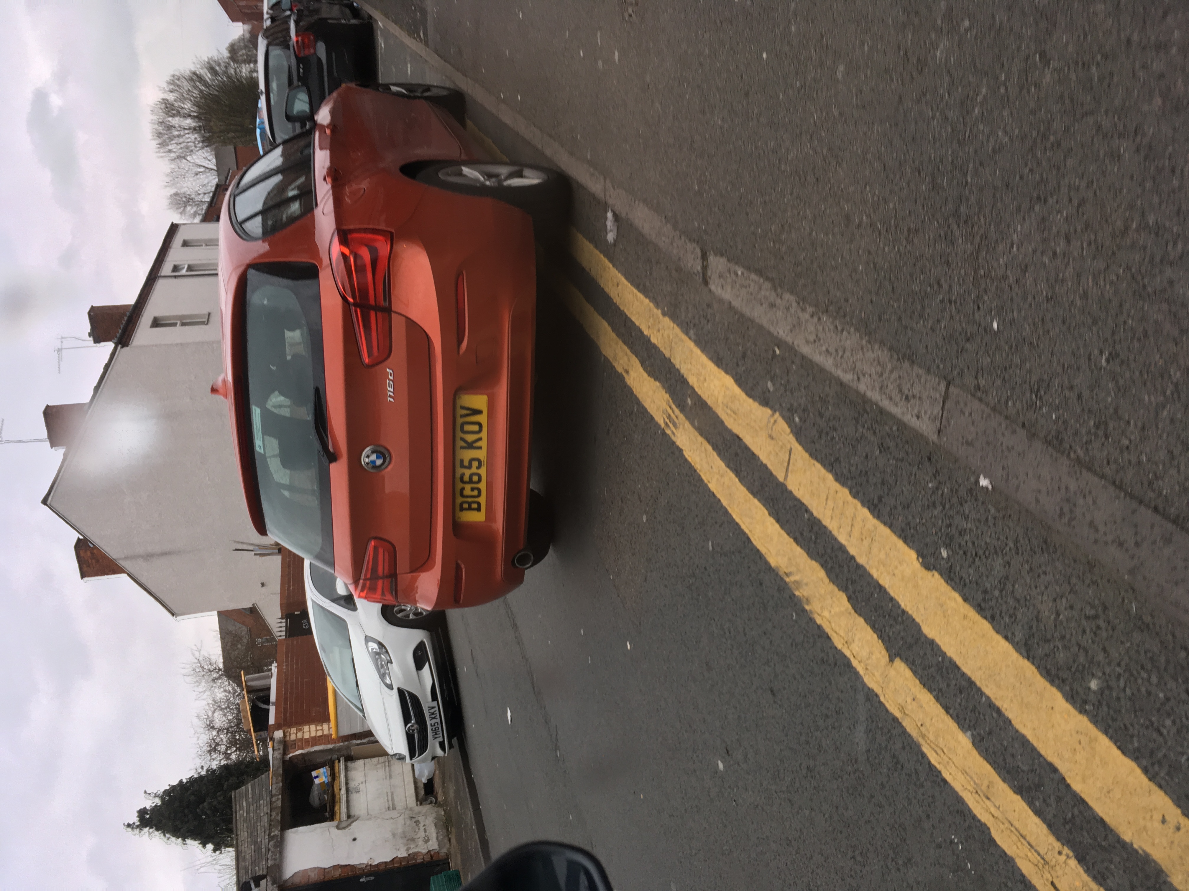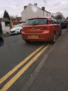 Parked on double yellows, blocking view to the right when exiting from a car park.