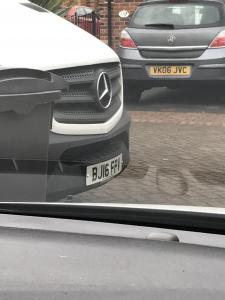 The driver of this van blocked my drive way, he came out and I asked him if he was moving on. He snapped back at me in a disgusting way. He knew I was mad because he then hid in his van whilst I pulled my car forward. I wanted to thank him for moving but he just sat there staring at me!!