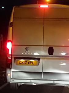 At about 10am on 7th Feb 18 the driver was driving dangerously near Darts farm Topsham. Driving very close to me then, deciding to over take by both exits from the shopping area at Darts Farm. Very nearly causing an accident. Then the driver sped off clearly exceeding the 40mph speed limit. Presumably the car is being driven illegally having no number plate on the rear.