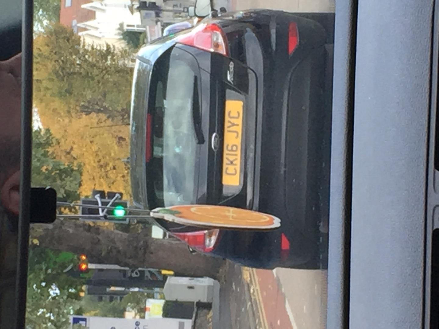 Drives with hazard lights on whilst going around round abouts in Bristol and dances without hands on steering wheel whilst driving watch out for this muppet!