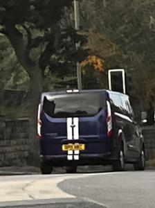 Opened her window and shouted at school kids because they apparently threw some acorn at her. Quite a funny one this. A big blue van it was , full of kids .