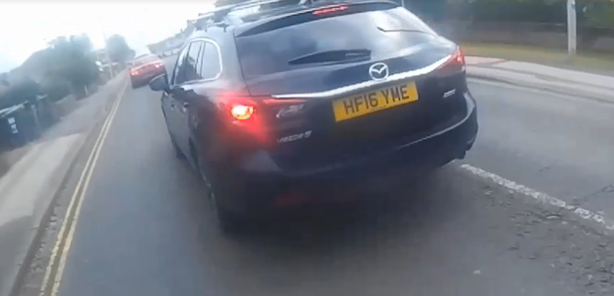 i don't get your thought process, are you thinking'' i must get in front of the cyclist so i can stare at the lights of the car before he gets there!'' or are you thinking' ...... blank. ? most pointless overtake ever. Just wait behind me for two seconds, i overtook you instantly as well as the long queue of cars you were desperate to sit behind. Weird.