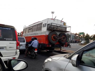 1. Yes I did see the Benz truck in India, and in India, pillion riders do not wear helmets.