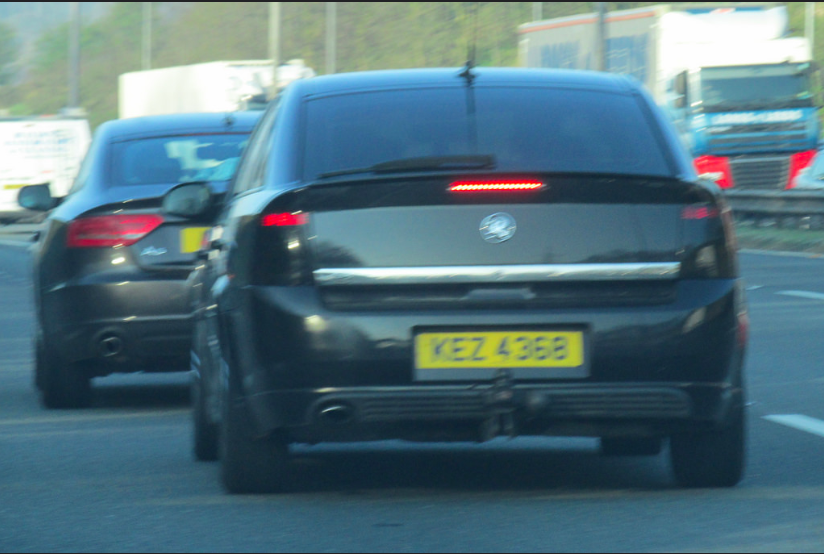 And his brake lights are also so darkly tinted that, were it not for the high level brake light, you would be unable to tell that this vehicle was actually braking. This is also an offence.