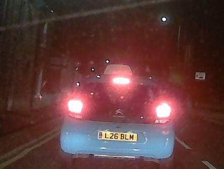 Driving around measham, Ashby area driving erratically, nearly causing pile up. Presumably attempting to fake an accident & not the first time judging by the back of it...
