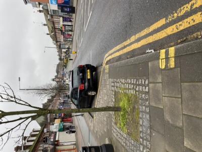 Selfish CNUT abandoning car in loading bay sticking out into traffic. Not in picture on the right side is a restriction causing a lorry wanting to deliver something to end up blocking road