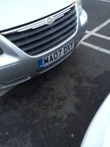 Returned to my car in Sainsburys, Haywards Heath, after shopping. I had parked with no one behind me but returned with this Chrysler parked up my bumper. I rolled forward to assess damage and see number plate then waited for offending driver. When he noticed there was no cctv he suggested I had reversed into him. Complete bellend the driver of MA07 DXY