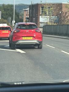 Wow… roundabout in Biddulph. This retard didn’t know what lane he wanted to be in so he went in between both and sort of zig zagged around the roundabout at random. Almost caused the guy next to us to crash.