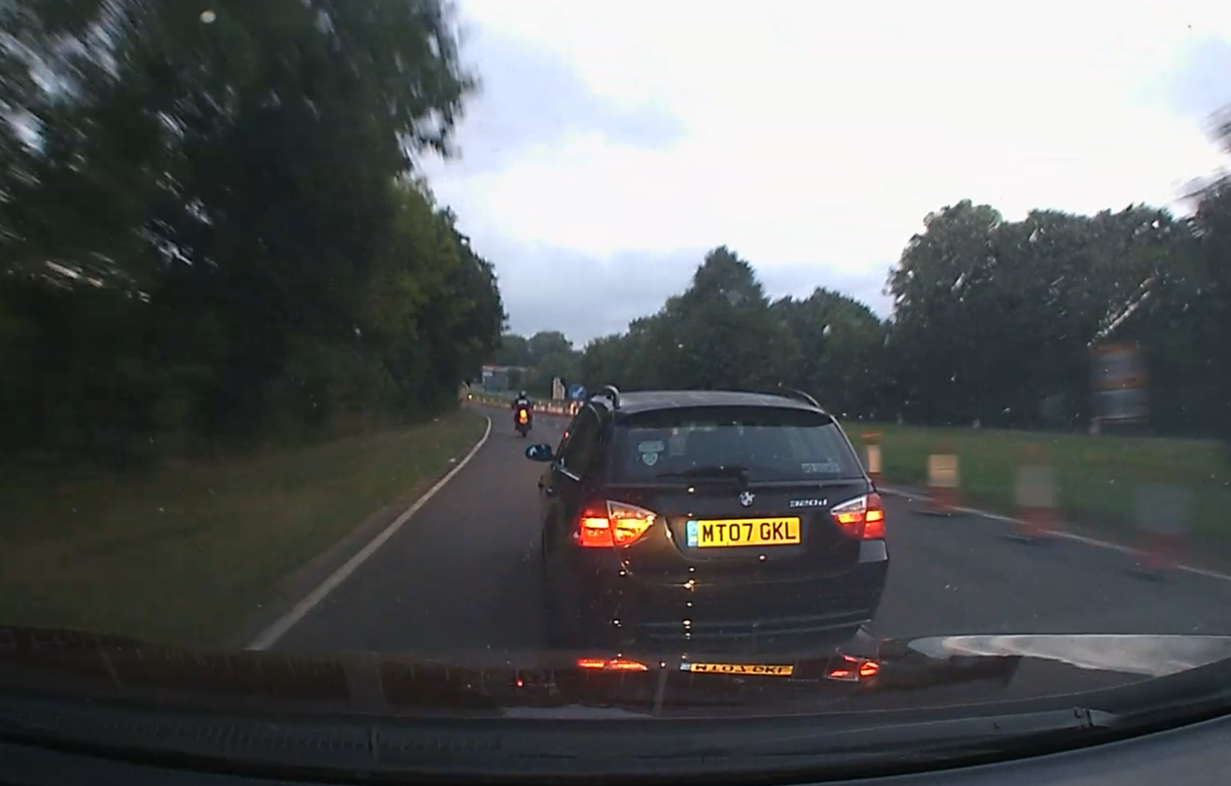 Up people backside in his rubbish little car. Don’t know who he thinks he is it was a bit embarrassing to watch.