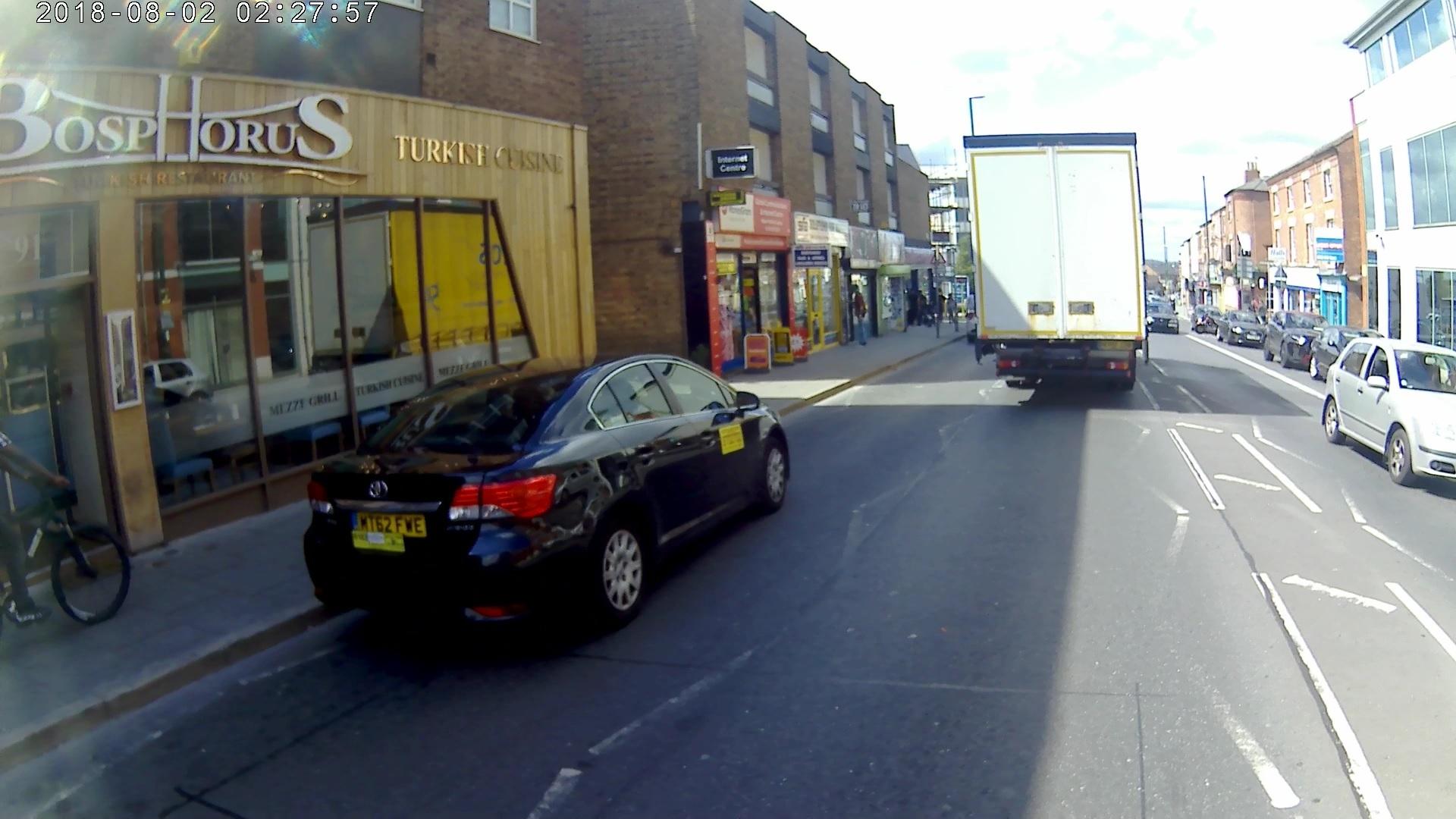 Idiot driving erratically cut me off at yellow box junction almost got £65 penalty when I used a horn he didnt like it ,reckless driver despite children in car , the female passenger was worst gesturing and swearing , it looks like an Uber driver although not sure, didn';t have tfl ,disc will report it to the police poor children.