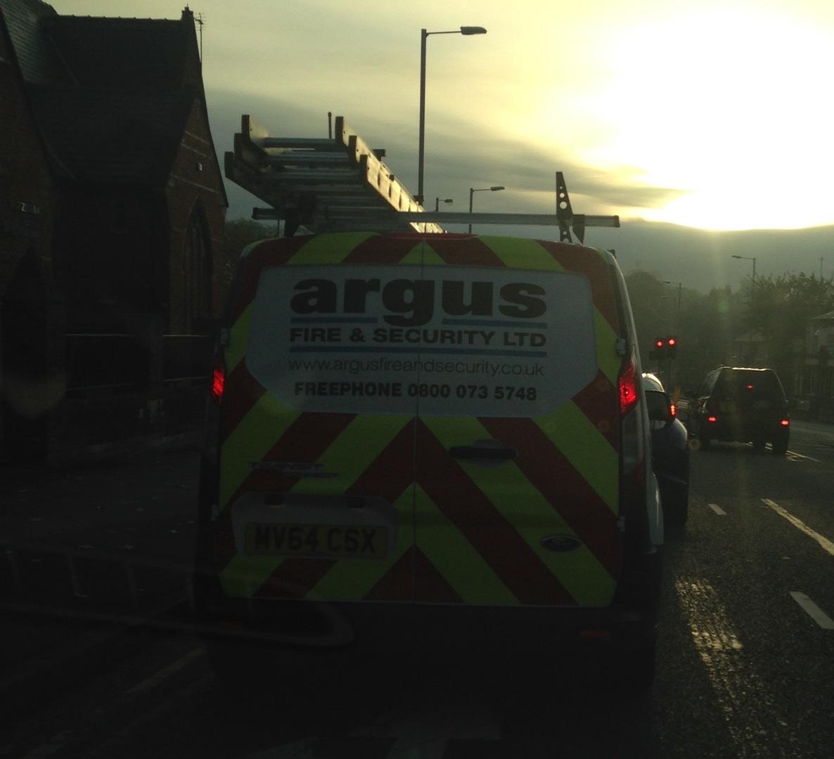 ARGUS Fire & Security - Great advert for your company from this absolute idiot dangerous driver this morning in Ashton-Under-Lyne/Stalybridge - Has got serious road rage issues, was giving verbal abuse out his window if anyone pulled in front of him, was also slamming on to try and get people to hit him!