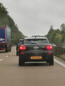 Seen in the rear view undertaking people on the motorway, as a car behind me was merging in a merge 3 to 2 lanes this idiot blocks them almost causing a 3 - 4 car crash, then proceeds to tailgate me, a few miles on i pull in when i can and let them pass then they proceed to tailgate the car infront until there was enough space to undertake (Very busy, heavy rain)- The woman is going to kill herself along with other road users, I've seen stolen cars be driven better