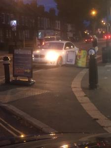 The white BMW decided to park on the zig zags and zebra crossing whilst girlfriend popped to the shop.