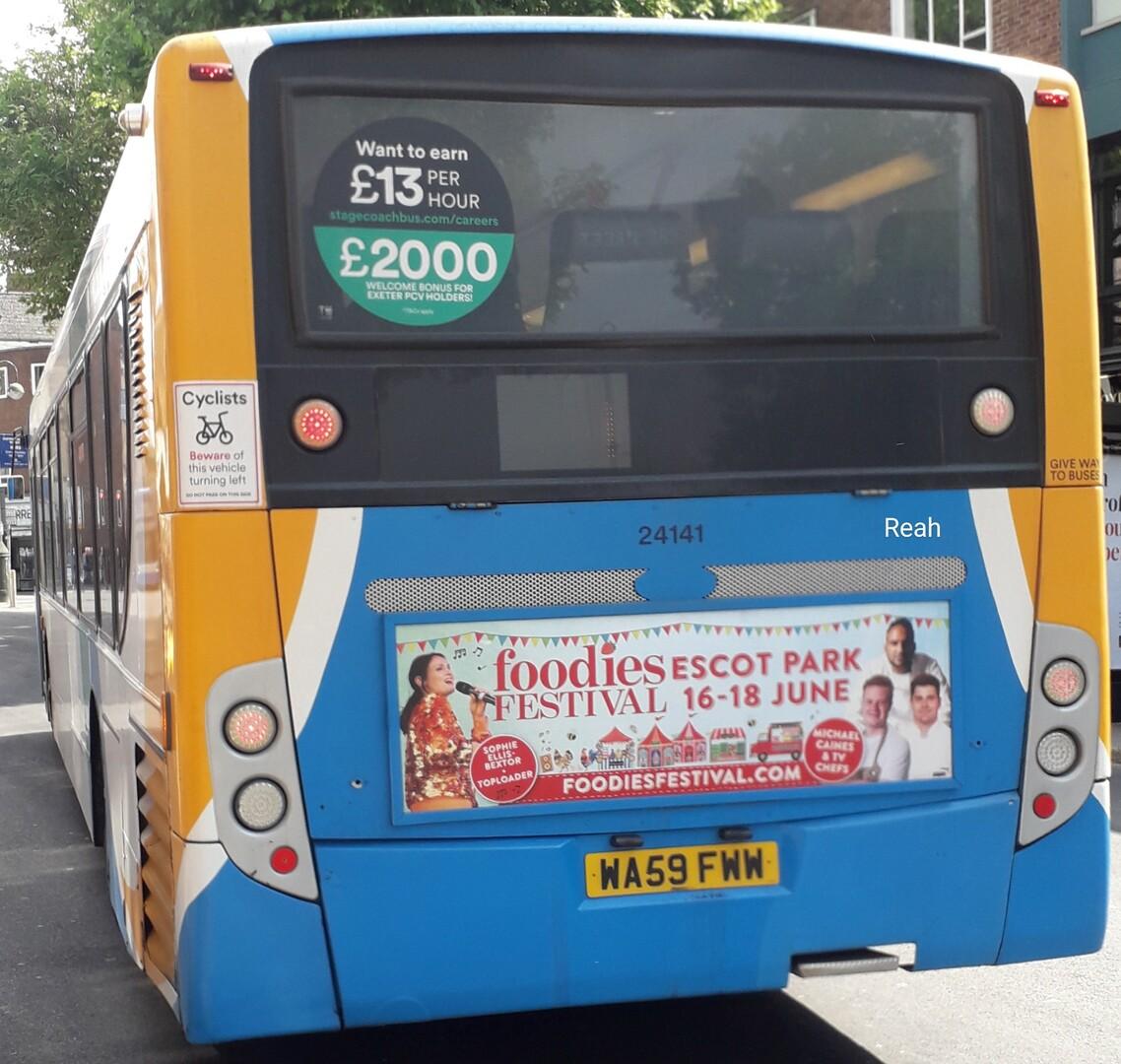 Here is a photo of the repainted Stagecoach Devon 24148 'Julie Anne' (WA59 FXE) taken on route Green to Sowton Park & Ride from Matford Park & Ride via Exeter city centre on 20 June 2023.