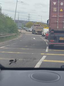 Very rude and dangerous driver. Pulled out from the parking in dual carriage way .almost hit the family car .when the car blow the horn to tell there presence .the truck driver looked through the window and pointed his middle finger towards the car driver.and signed him that he will kill them..it happened on 5th April 2019 around 2:35 PM near rotherham roundabout .hope the authorities will find him at take him out from the road soon