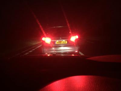 Driving aggressively in Avonmouth, Bristol today Dec 12th 2015. Too close to me, nearly hit my car a few times & then overtook me in a dangerous spot for no apparent reason as the cars in front were moving very slowly. Made me feel intimidated/scared & not wanting to make eye contact with the male driver.