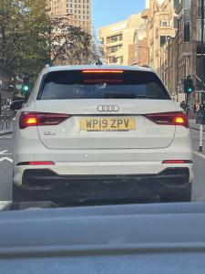 White audi driving exactly how a white audi stereotypically drives, unsafe, obnoxious and reckless. Drives aggressively without a care or consideration for others, pedestrians and road users alike.